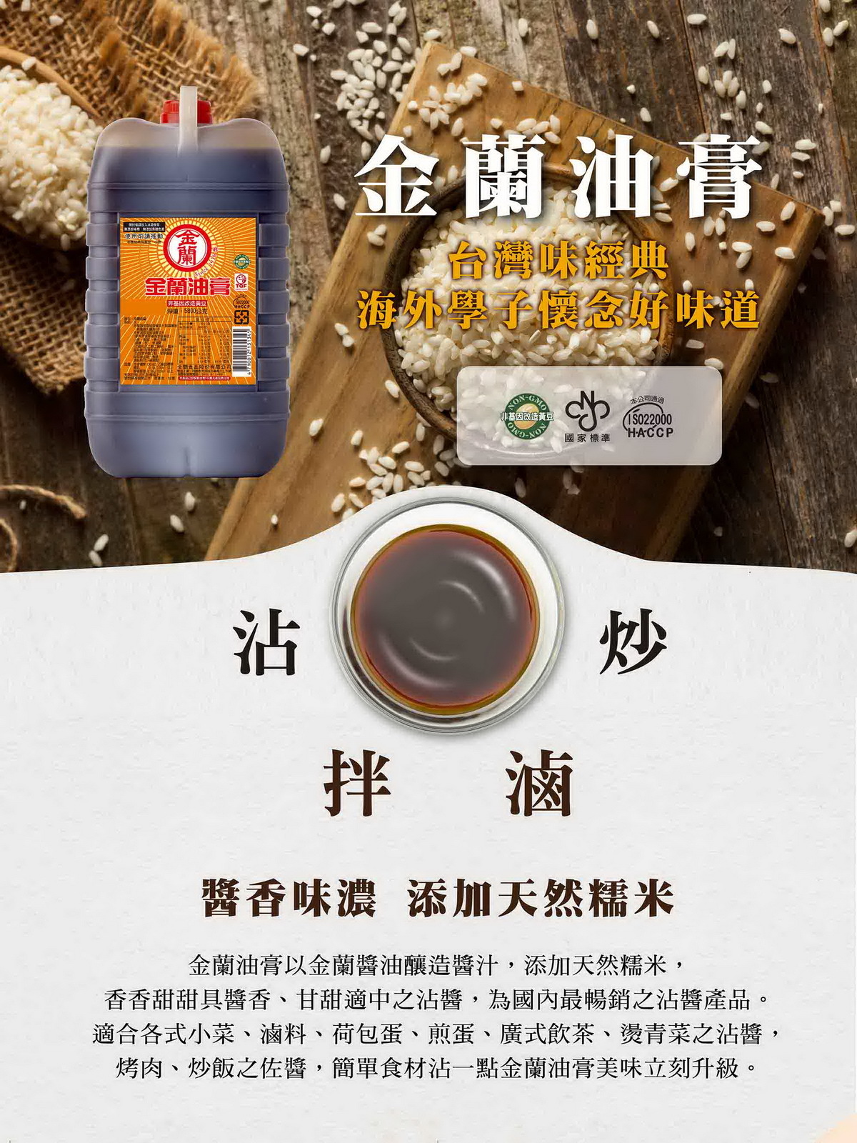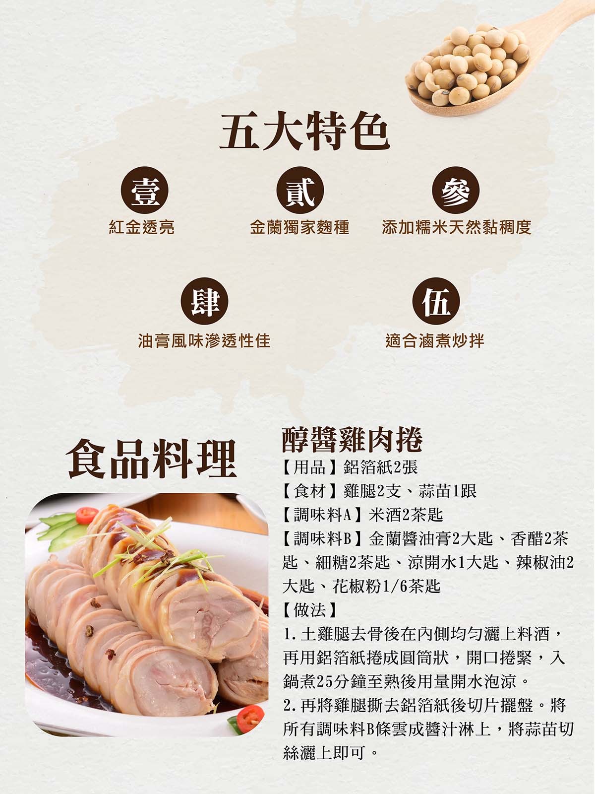 以金蘭醬油釀造醬汁,添加天然糯米,