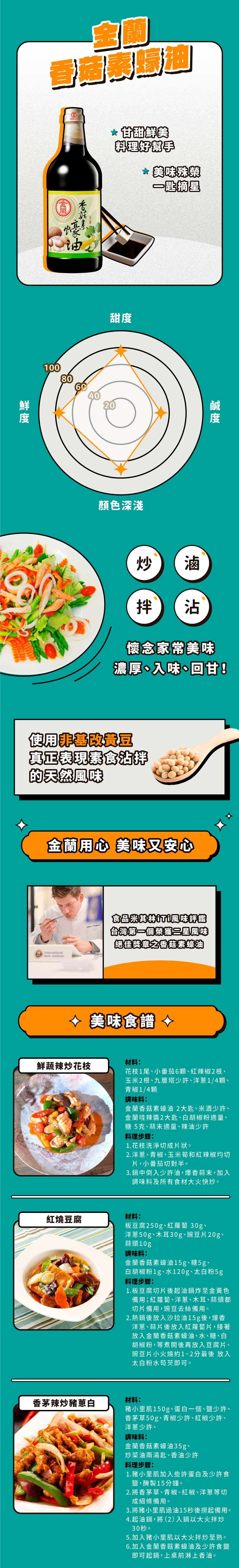 以金蘭油膏為基底技術,精選日本香菇精華,讓風味更甘甜鮮美。