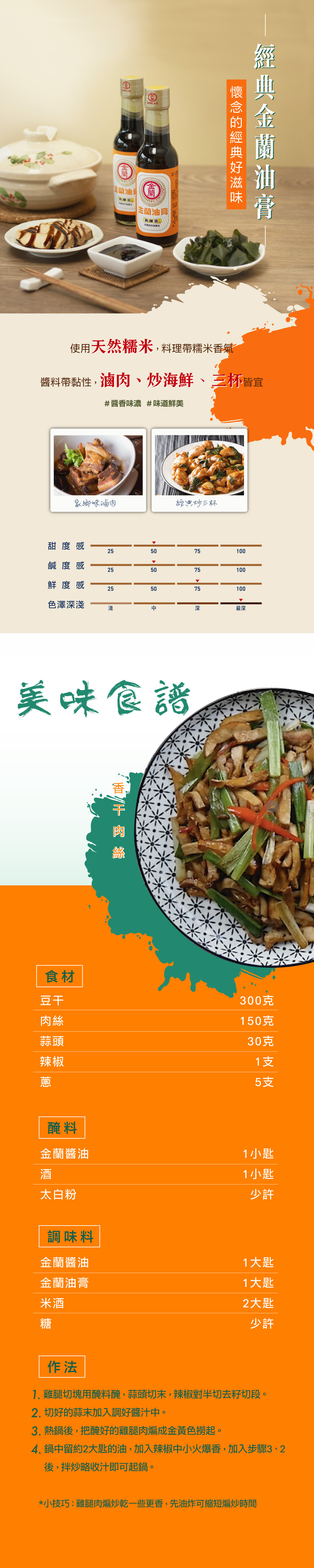 • 適合滷肉、炒海鮮、三杯等料理