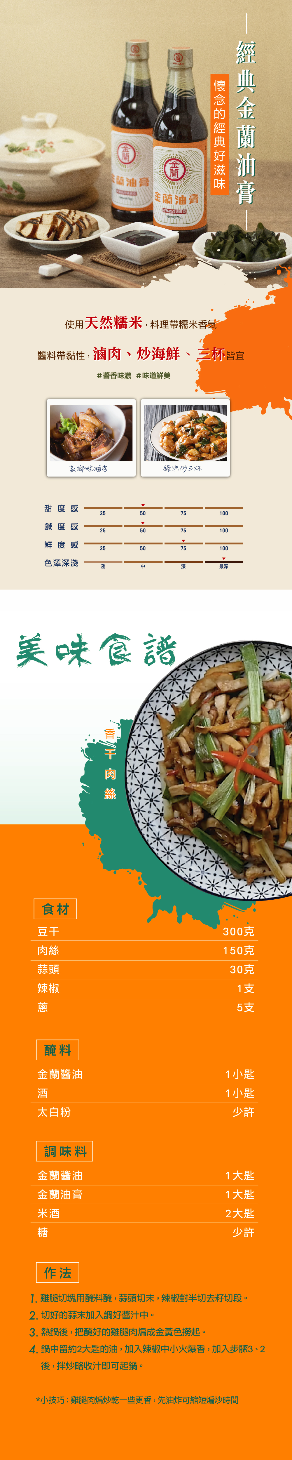 • 適合滷肉、炒海鮮、三杯等料理